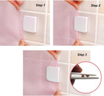 Easy to install: Each Shower Splash Clip comes with self-adhesive pad to stick to tiles. Find a suitable spot to place the clips. Remove the adhesive cover sheet from the pad and stick the splash guard on the smooth tile. Then slide the curtain edge into the slot.