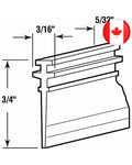 Shower Door "T" Bottom Sweep is a 3/4 inch (19.1 millimeter) vinyl with a "T" shaped end which allows it to fit into an opening in the shower door frame.